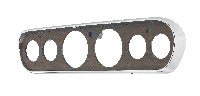 1965-66 Mustang Custom 6 Hole Instrument Bezel is a great way to upgrade your gauge set while retaining the factory appearance. Available with a brushed aluminum insert, metal back walnut insert on aluminum, or black camera case. These high quality bezels are precision crafted to replace your stock unit exactly. Features include: two 3 3/8” holes for a tach and speedometer, four 2 1/16” holes for the gauges of your choice, and integrated turn signal/high beam indicator lens for OEM bulb and connector. Designed to work with most any aftermarket gauges.