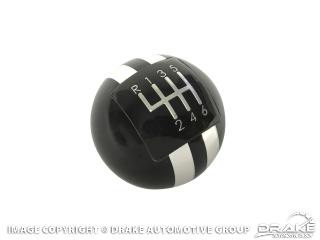 Add hardcore racer styling to any 2015+ Mustang 6spd with a Pro Billet Shift Knob from Drake Muscle Cars. This precision CNC machined shift knob is milled from billet aluminum and features a pair of crisp racing stripes and a sleek black anodized finish. It’s topped with a stamped aluminum shift pattern emblem that is clear coated for lasting good looks. Installation is simple with no need for an adapter or jam nut. The Pro Billet Shift Knob has a recessed base so it is fully compatible with factory reverse-lock out. Each knob is threaded M12-1.25 for the factory shift lever.